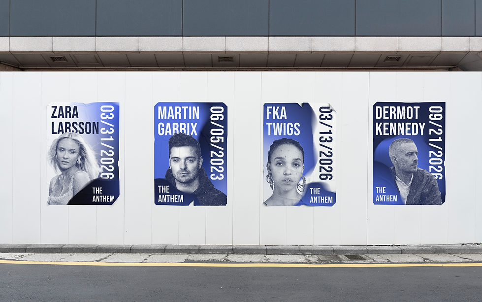 The Anthem is a branding and visual identity project created for a premier live music venue located in Southwest Waterfront neighborhood of Washington, D.C. The project explores how a cohesive identity system can extend across multiple touchpoints, including environmental graphics, event posters, tickets, merchandise and wayfinding signage.